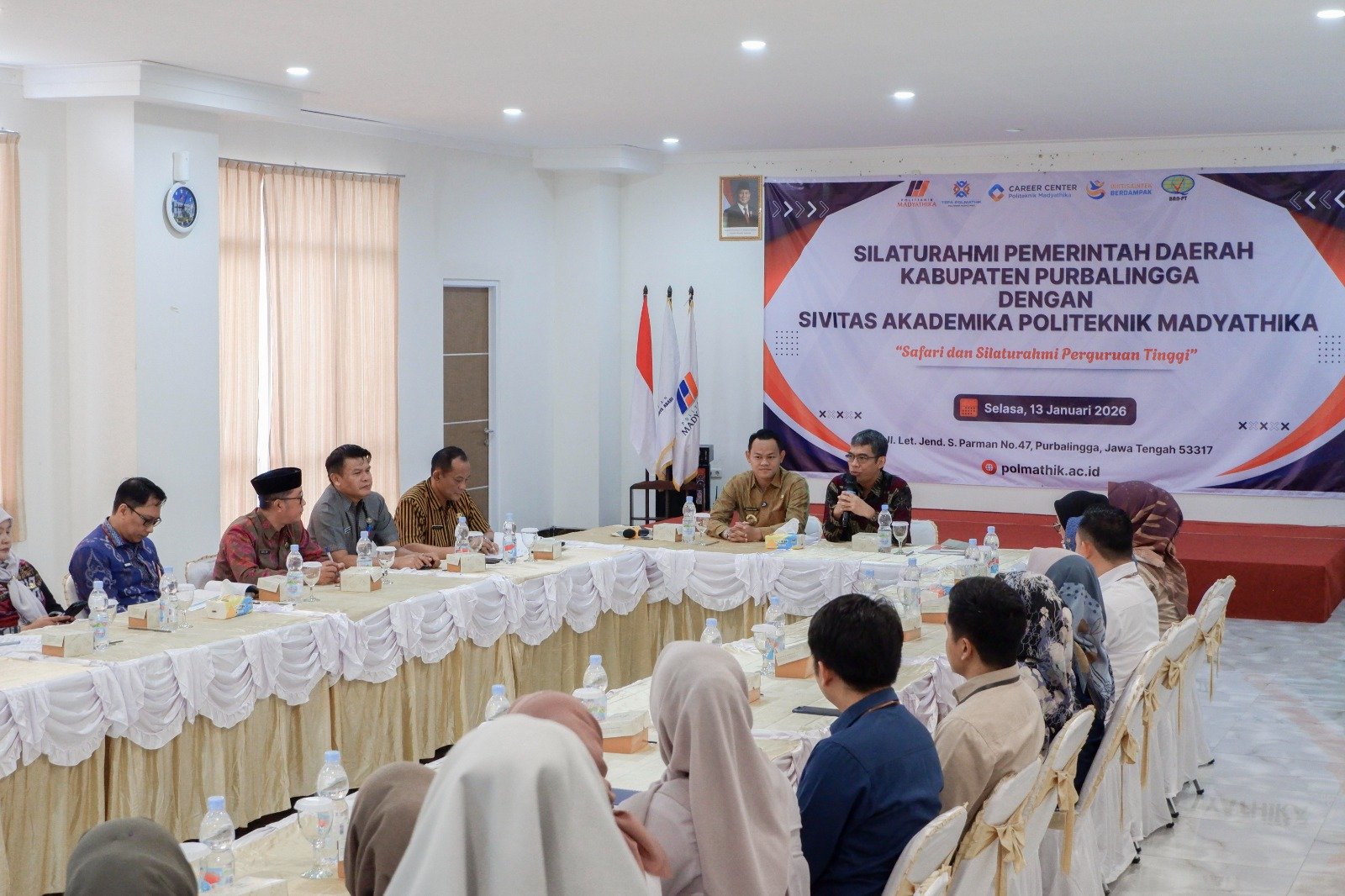 Kegiatan yang dikemas dalam agenda Safari dan Silaturahmi Perguruan Tinggi tersebut dihadiri oleh pimpinan Politeknik Madyathika, sivitas akademika, serta jajaran perwakilan Pemerintah Kabupaten Purbalingga. Suasana pertemuan berlangsung hangat serta mencerminkan semangat kebersamaan dan kolaborasi.